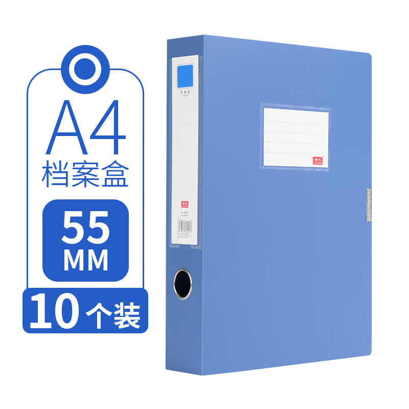 齐心(COMIX)10只A4档案盒55mm粘扣文件盒加厚塑料资料盒凭证人事城建文件收纳盒办公财会用品蓝色EA1002-10