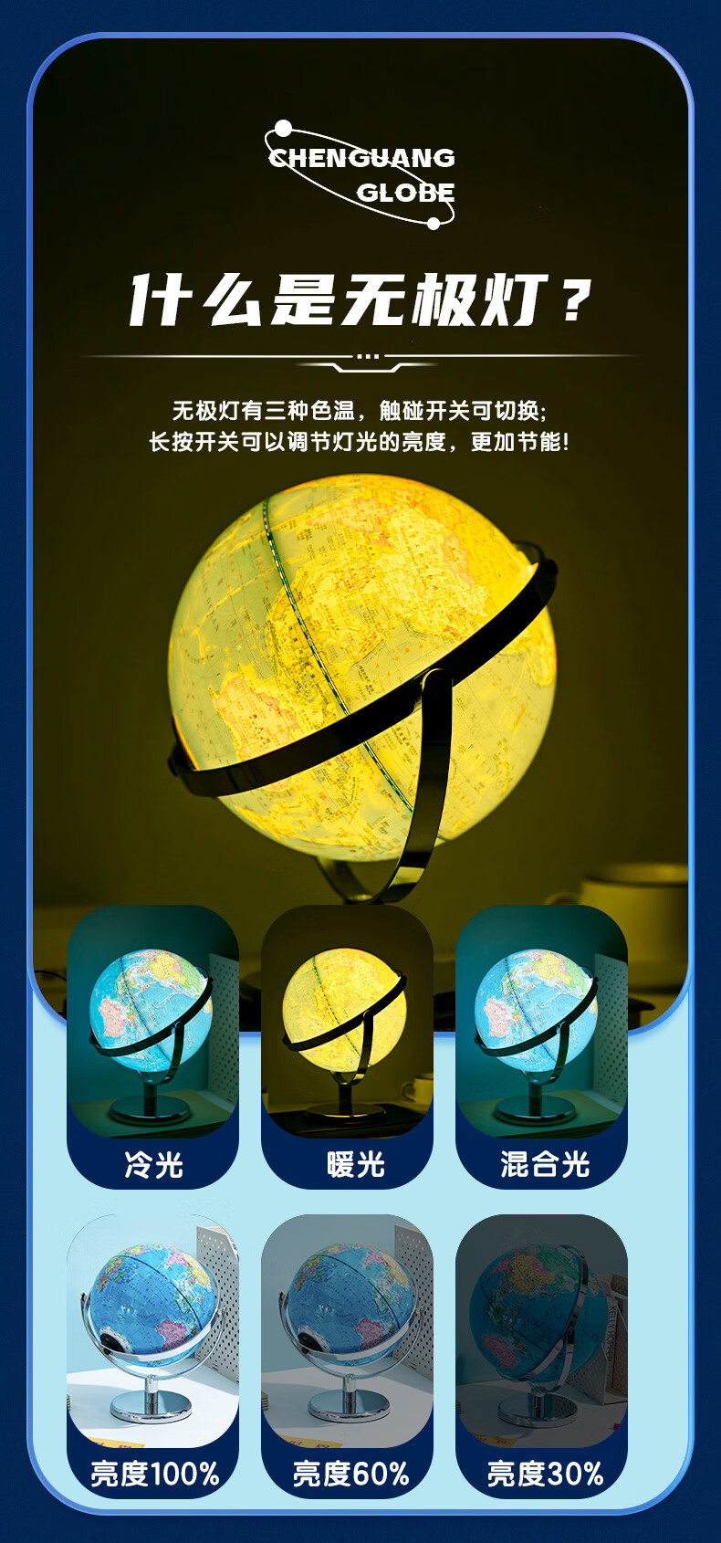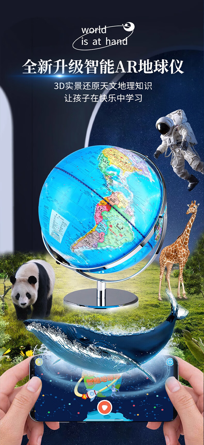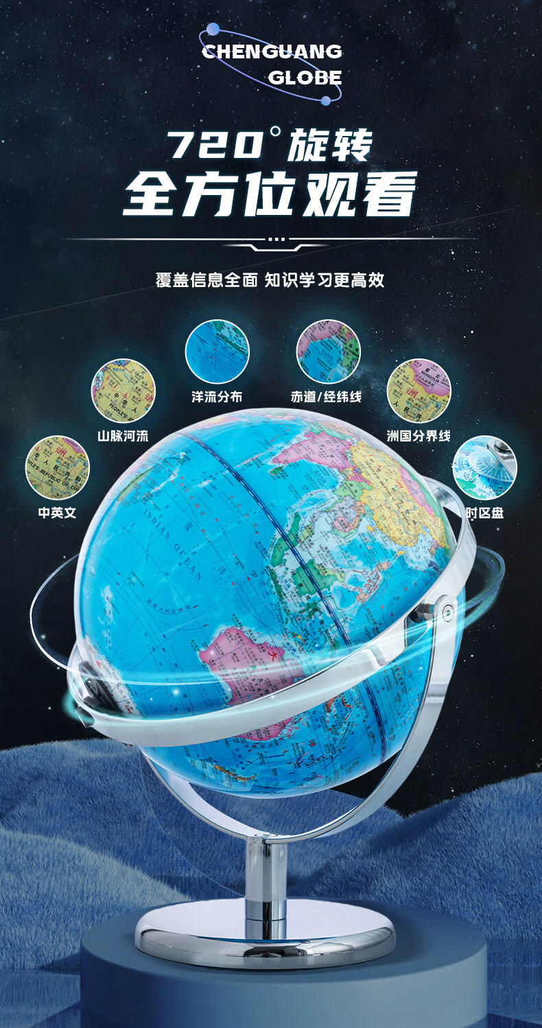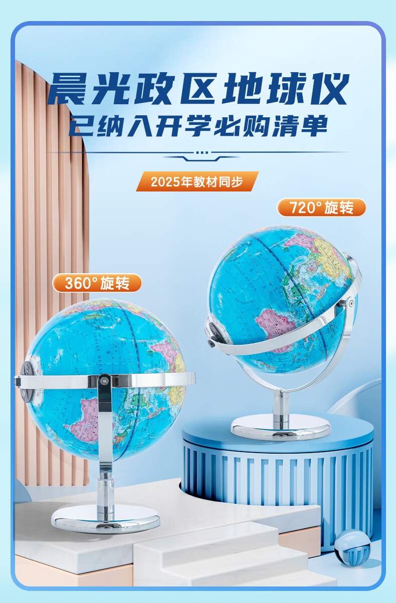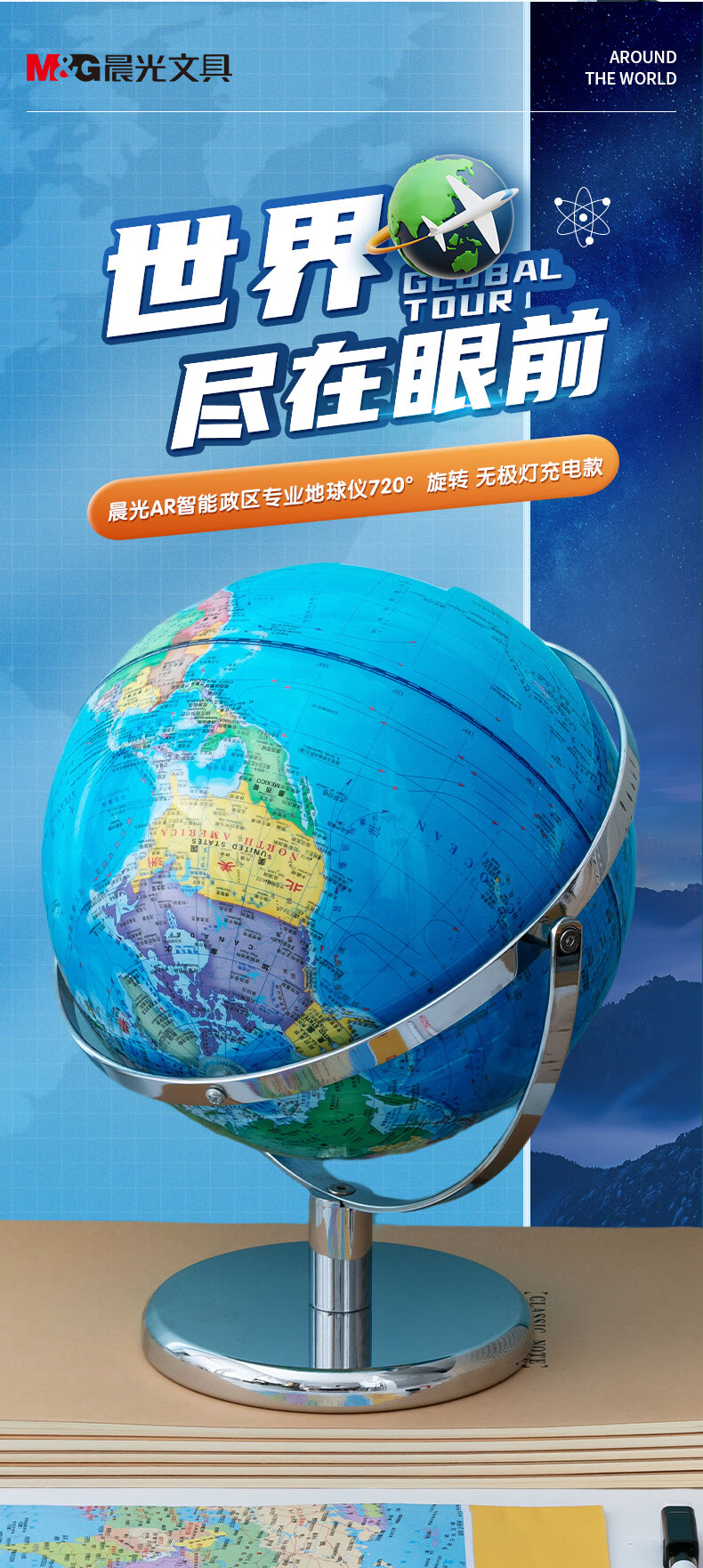 晨光(M&G)文具无极灯720°万向政区AR地球仪32cm教材同步小学初中生日礼物 幼儿园毕业礼物办公室摆件3色灯