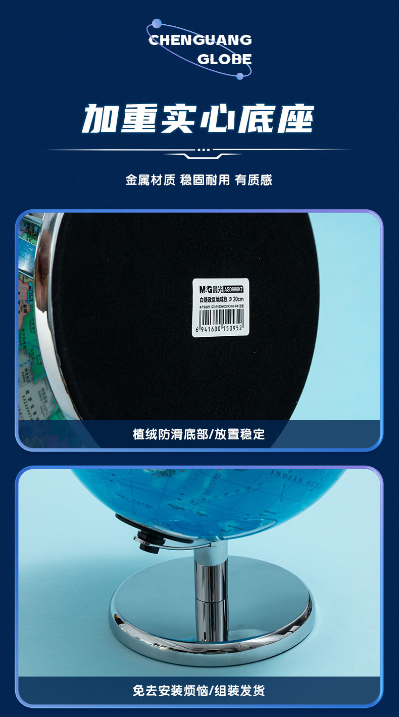 金球(jinqiu)20cm学生自用办公地球仪 教学研究摆件办公用品礼物男女孩玩具教师生日六一儿童节礼物