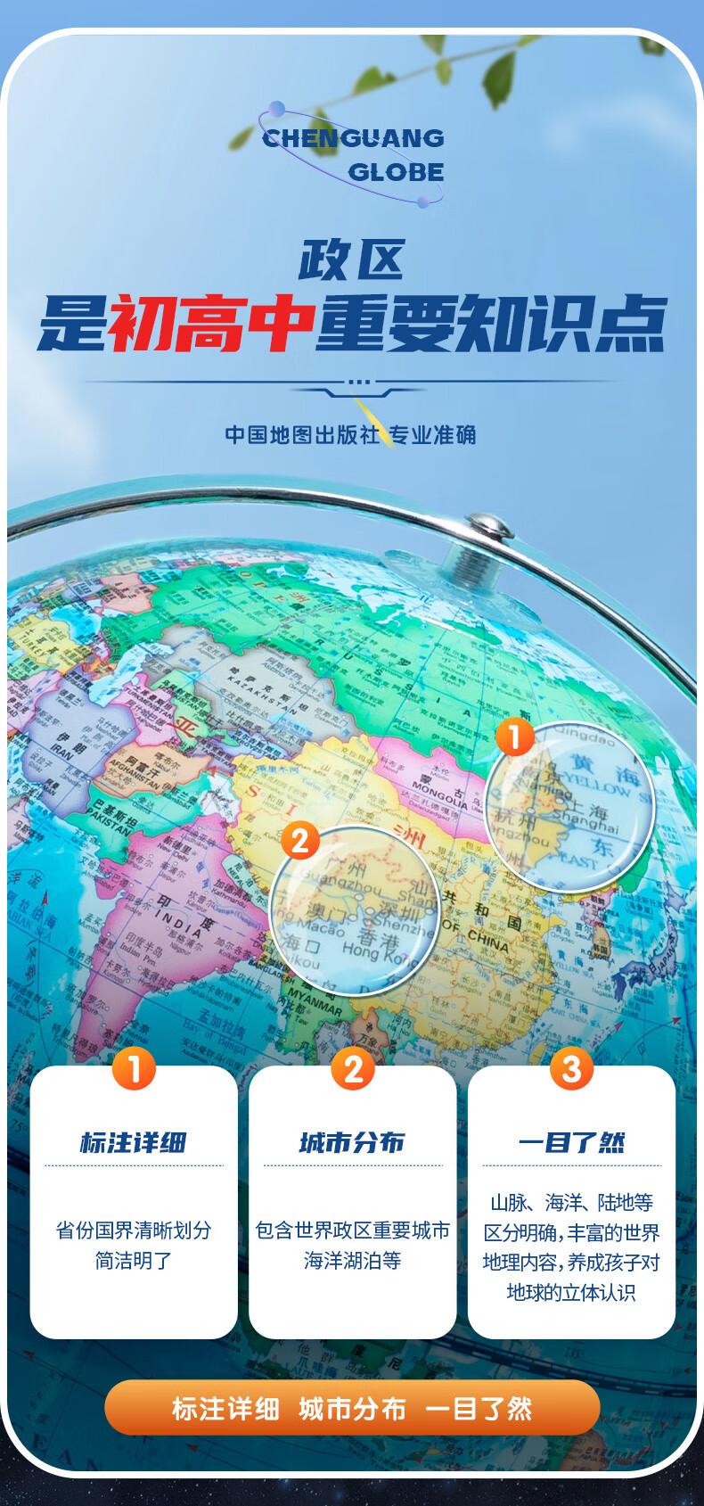 得力(deli)【全网低价】得力20cm学生自用办公地球仪 教学研究摆件办公用品礼物男女孩玩具教师生日礼品