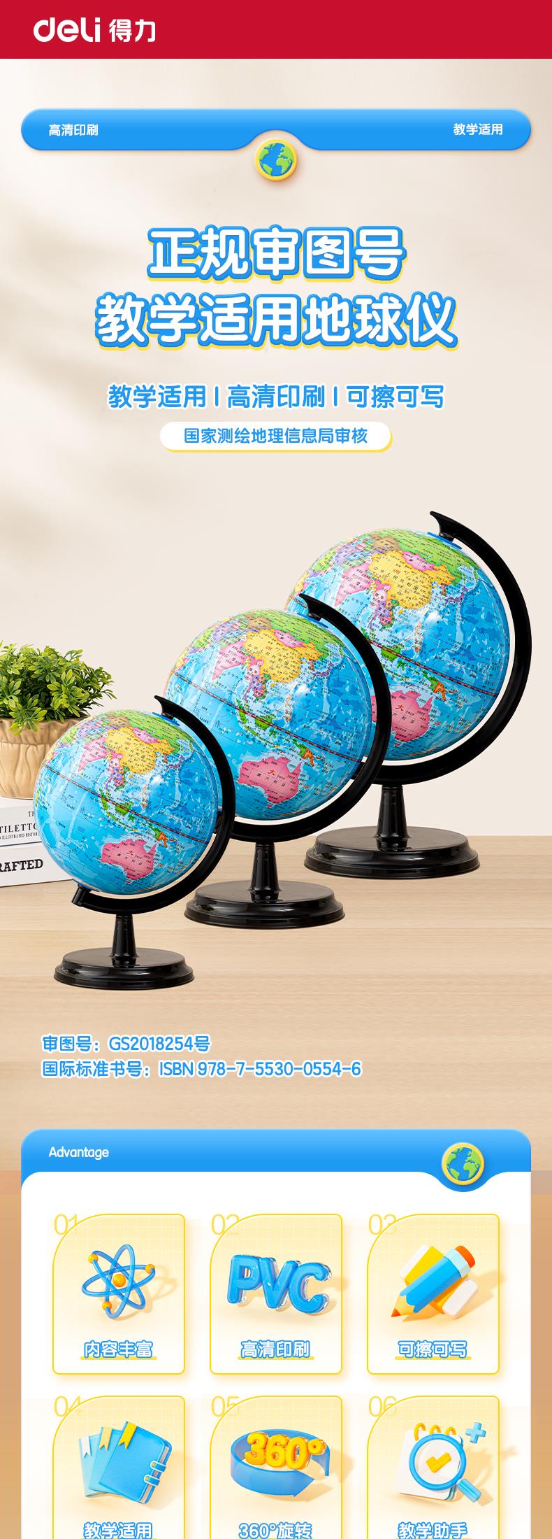得力(deli)【全网低价】得力20cm学生自用办公地球仪 教学研究摆件办公用品礼物男女孩玩具教师生日礼品