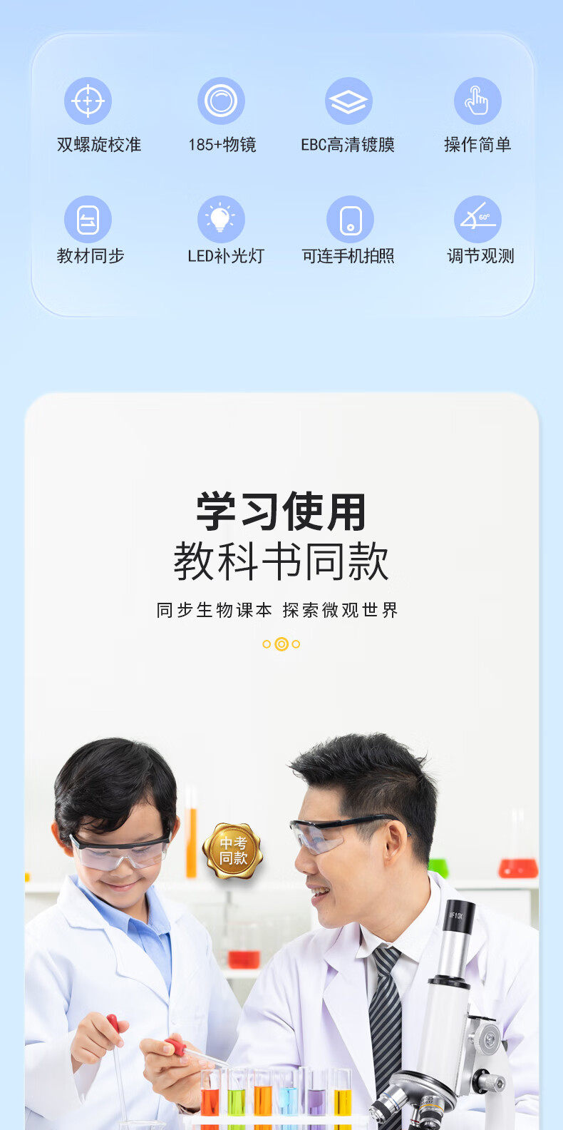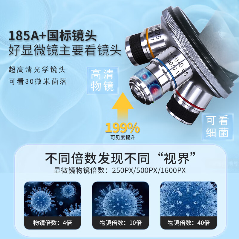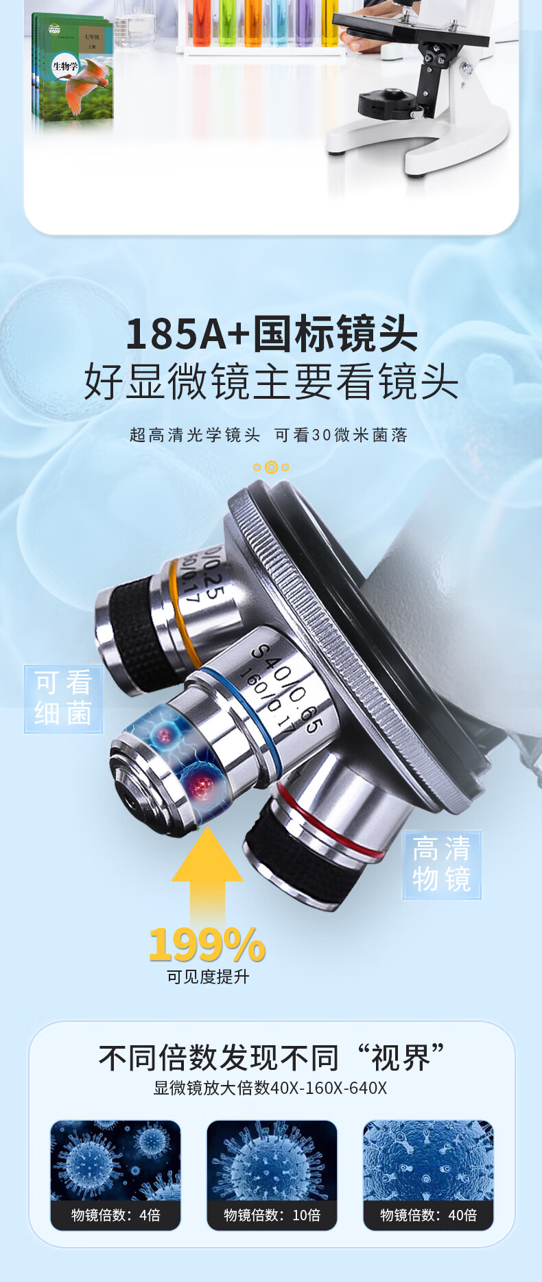 铁牛(Tieniu)显微镜初中生中考教学专用小学7-14岁男孩玩具儿童科学实验礼物
