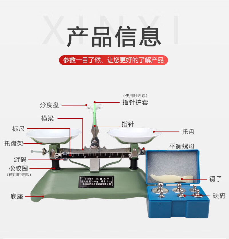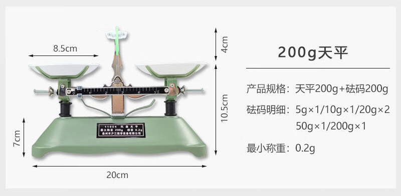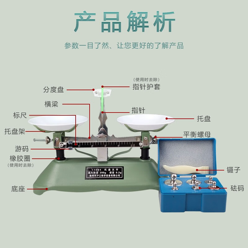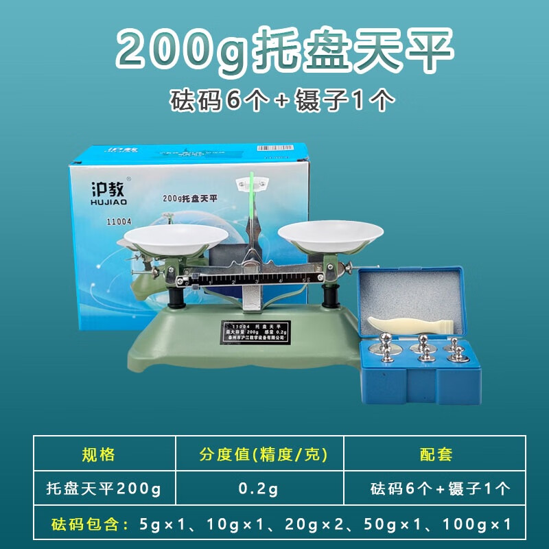 舜江 托盘天平 学生用架盘秤 中学初中物理实验器材教学仪器 量程200g托盘天平附带砝码