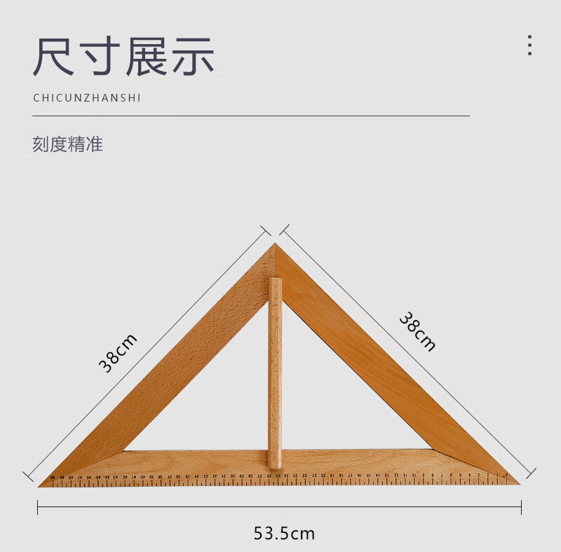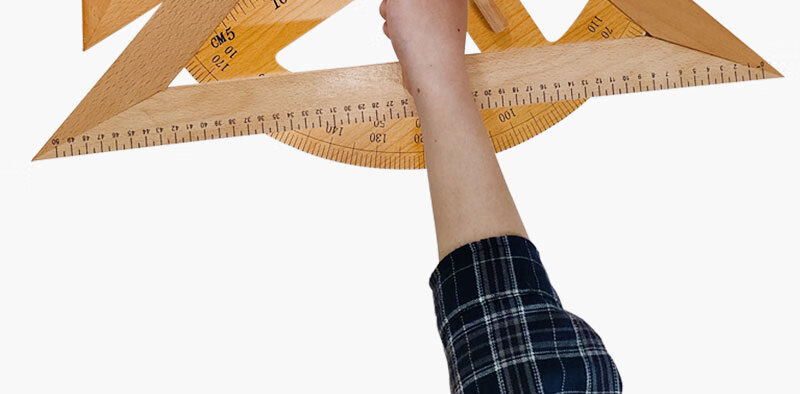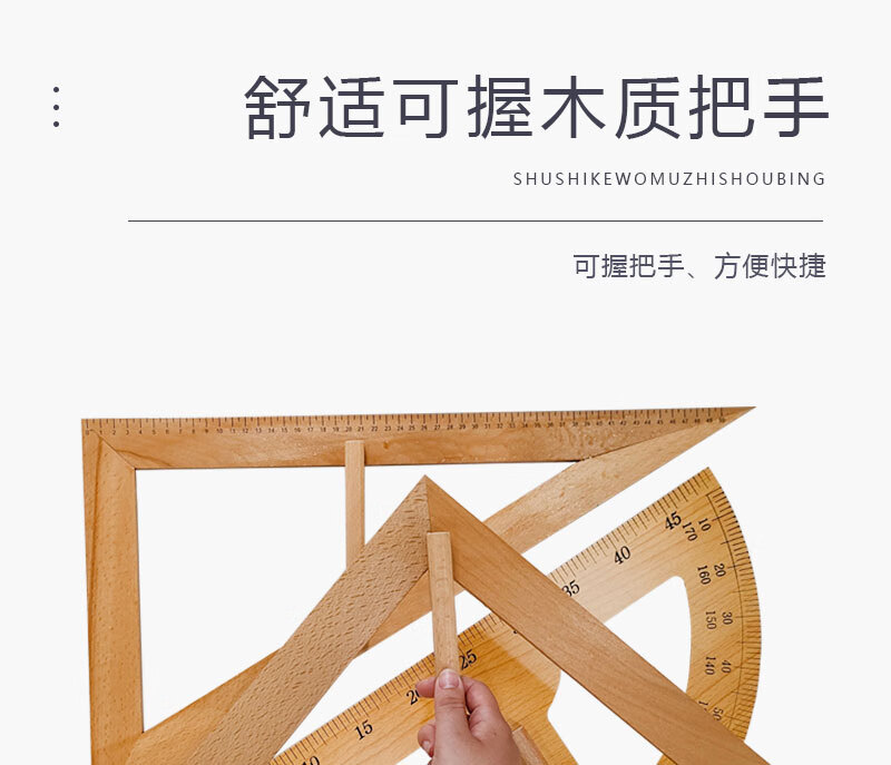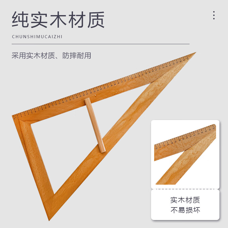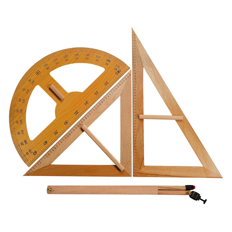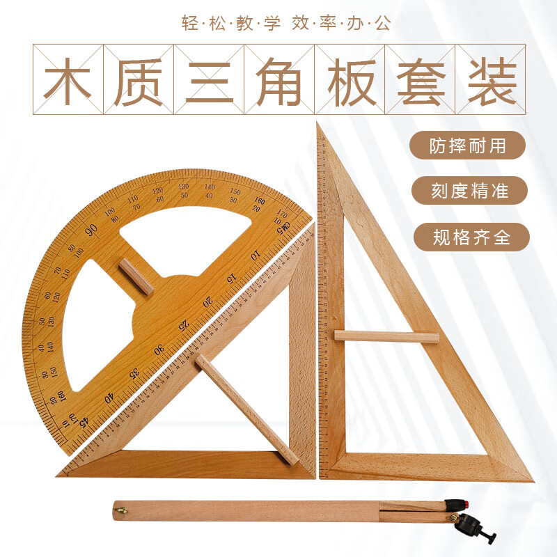 舜江 教学用大号木质三角尺子 教师用大多功能大号绘图工具量角器 作图套装套尺 榉木三角板+量角器+红头圆规
