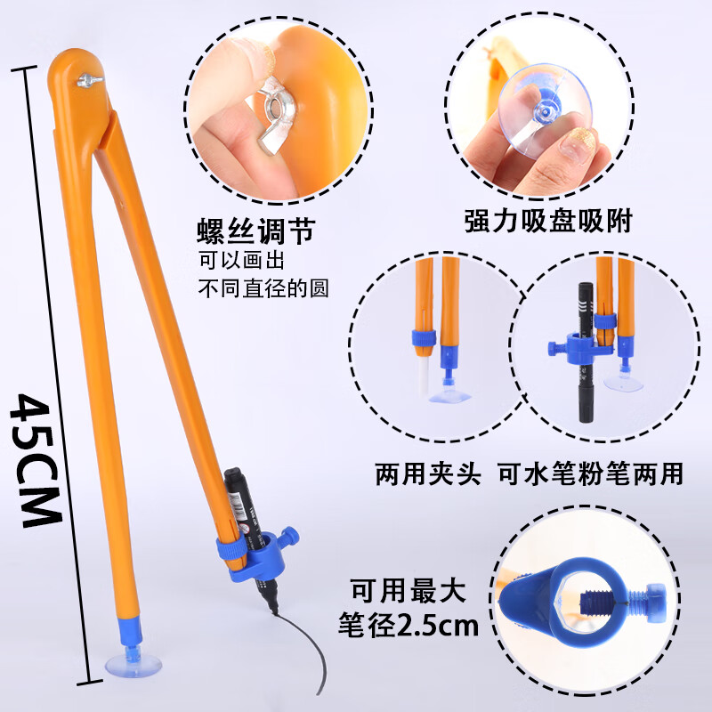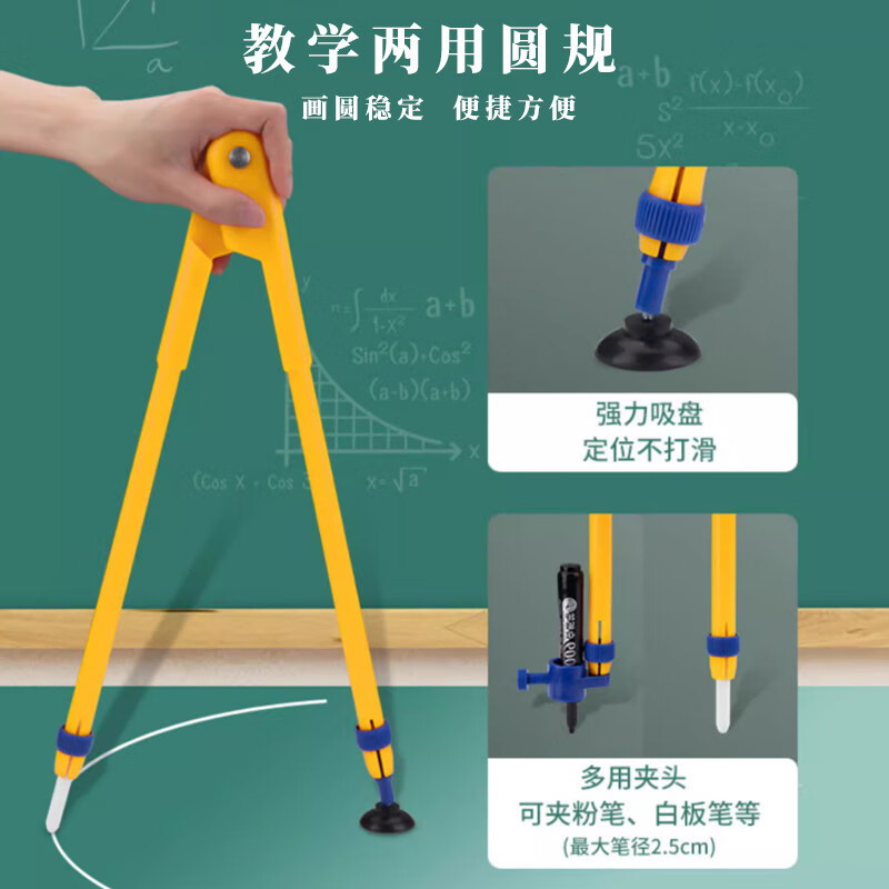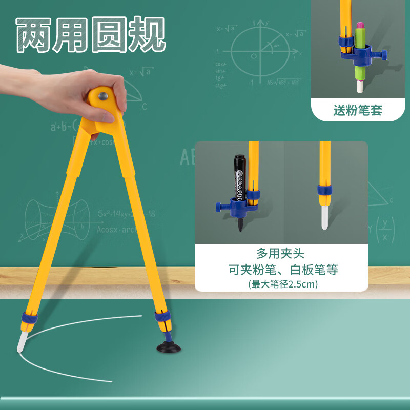 荣花施教学圆规教师专用教具大号塑料专业绘图工具尺子圆规多功能黑板夹笔式圆规高颜值小学老师画图龖 圆规【两用款】